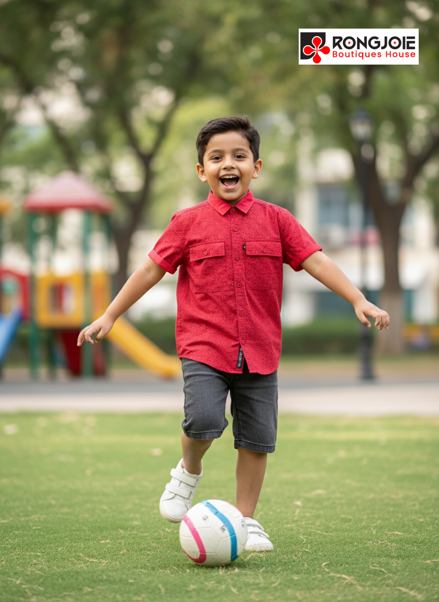 This eye-catching Red Short-Sleeve Shirt from RONGJOIE is designed for boys look great! The vibrant color and textured print make it a standout piece, while the comfortable design ensures he can run, jump, and play all day long.