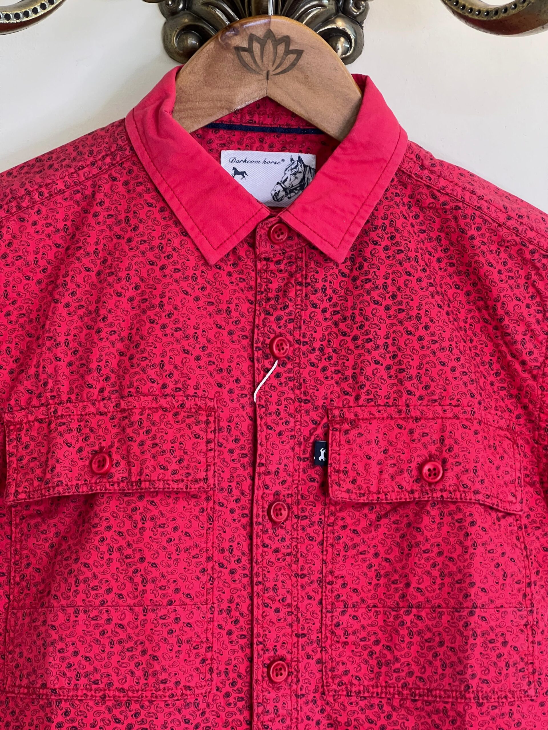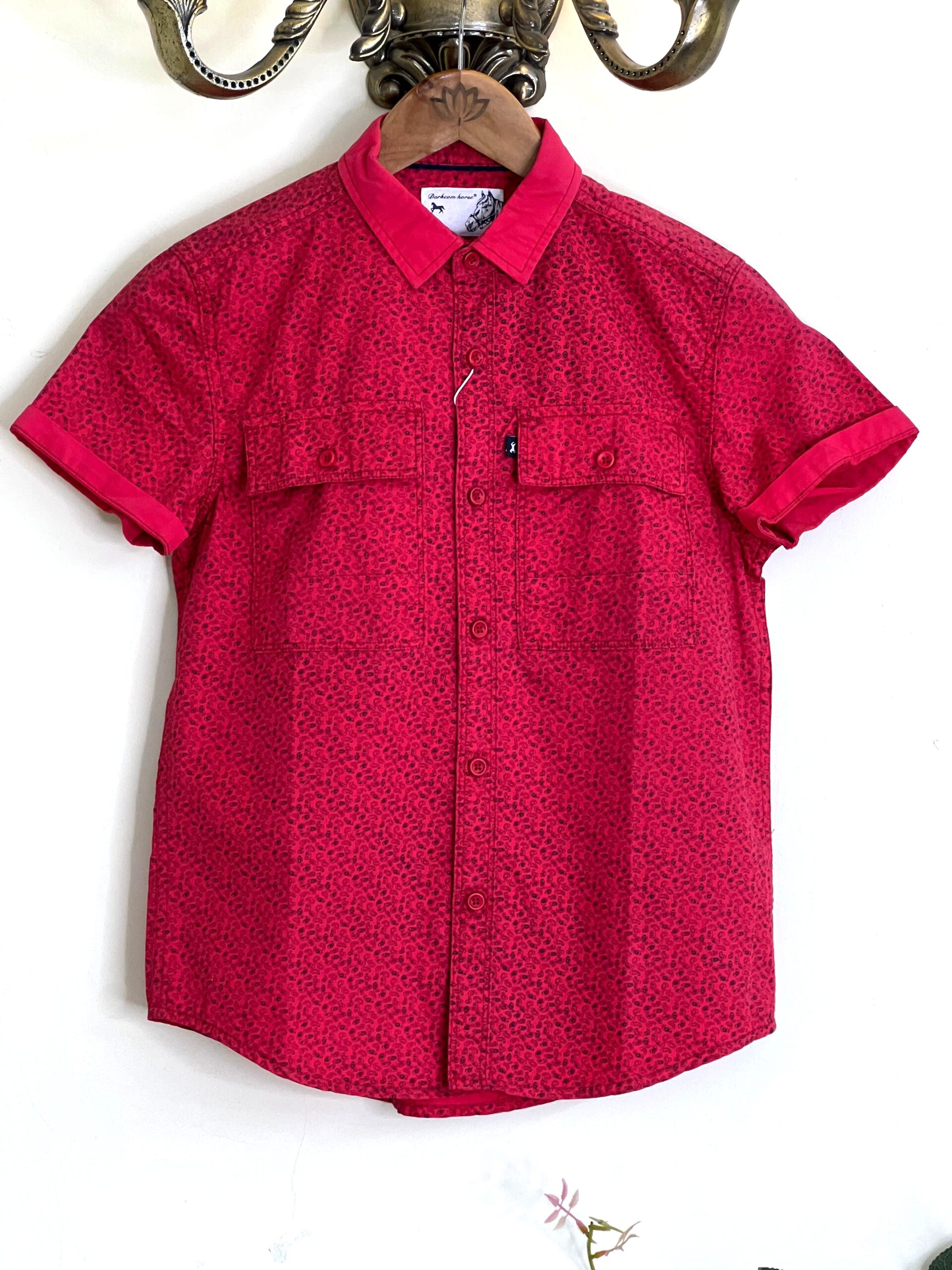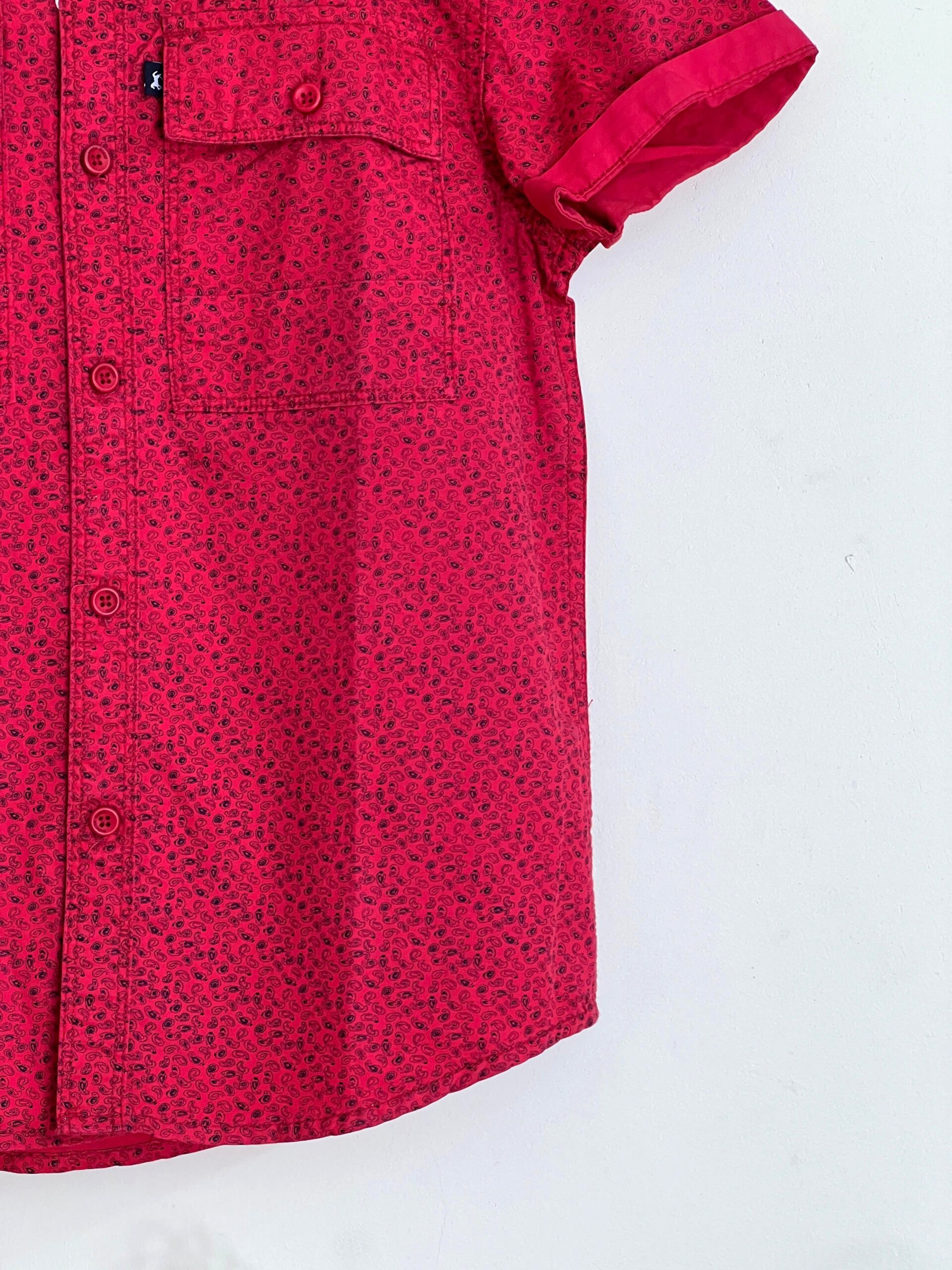 Red Short-Sleeve Shirt – Textured Print & Double Pockets
